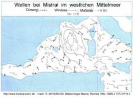 Die örtliche Windsee hat ihren Ursprung allein in den vor Ort aktuell herrschenden Winden, zum Beispiel in der ´Nachmittagsbrise´ oder einem West- oder Ostwind in der Strasse von Bonifacio. Sie